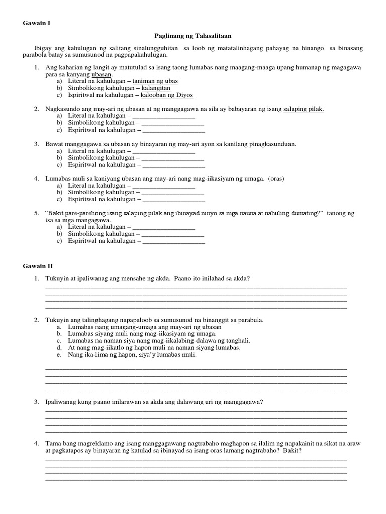 Literal Na Kahulugan Ng Ubasan Halimbawa