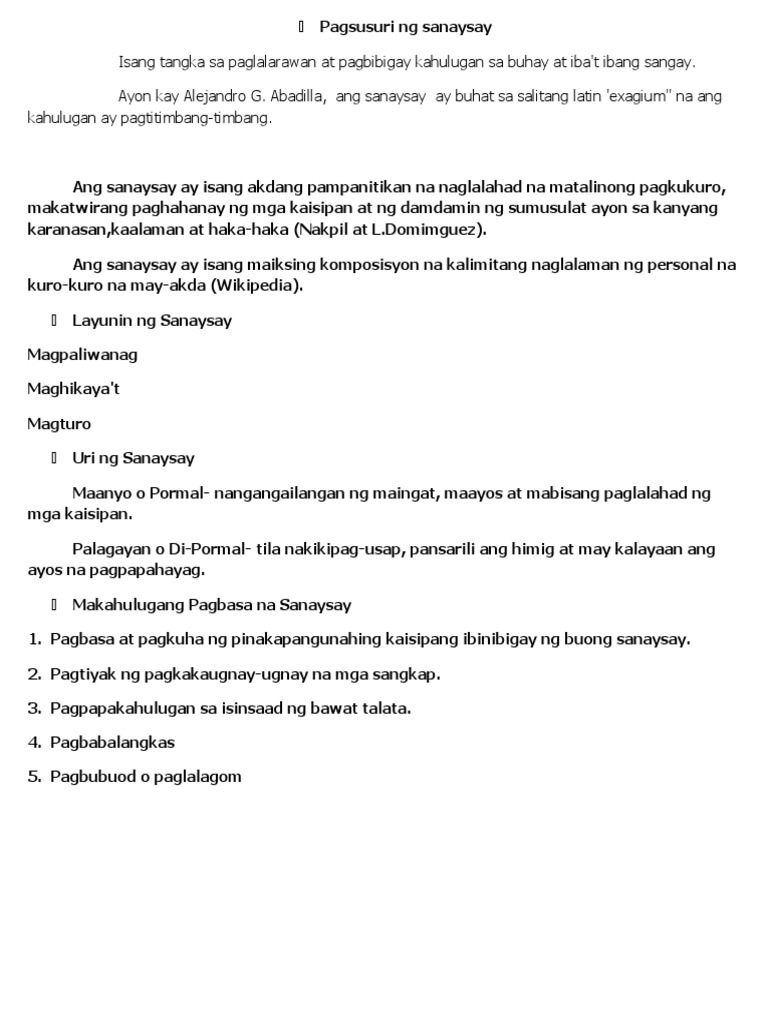 Word Pagsusuri Ng Sanaysay Pdf