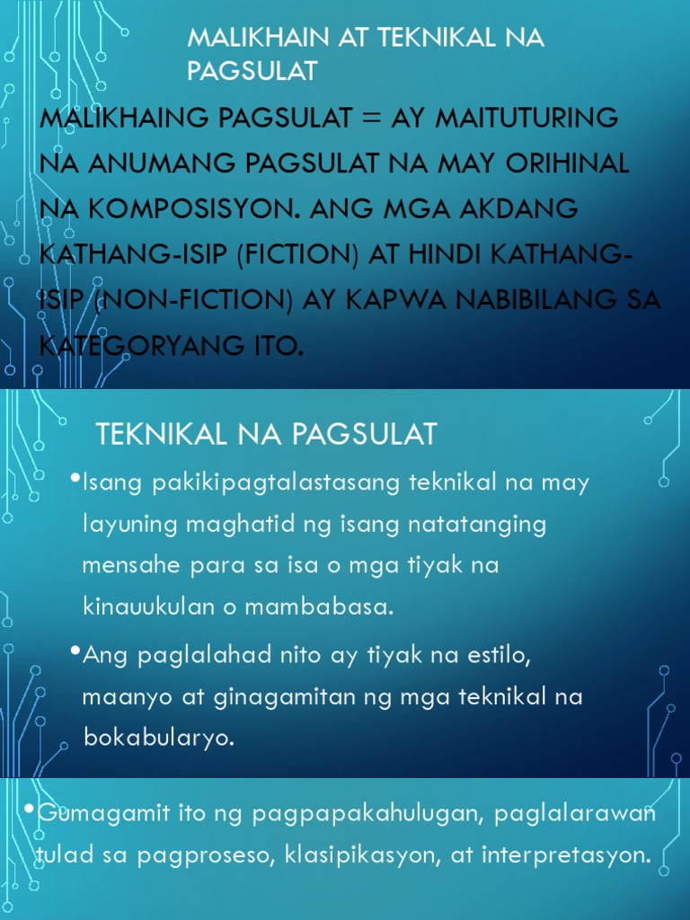 Hinggil sa Malikhaing Pagsulat ng Tula sa Filipino. Ano ang hindi saklaw ng teknikal na pagsulat. Ano ang katangian ng malikhaing pagsulat.