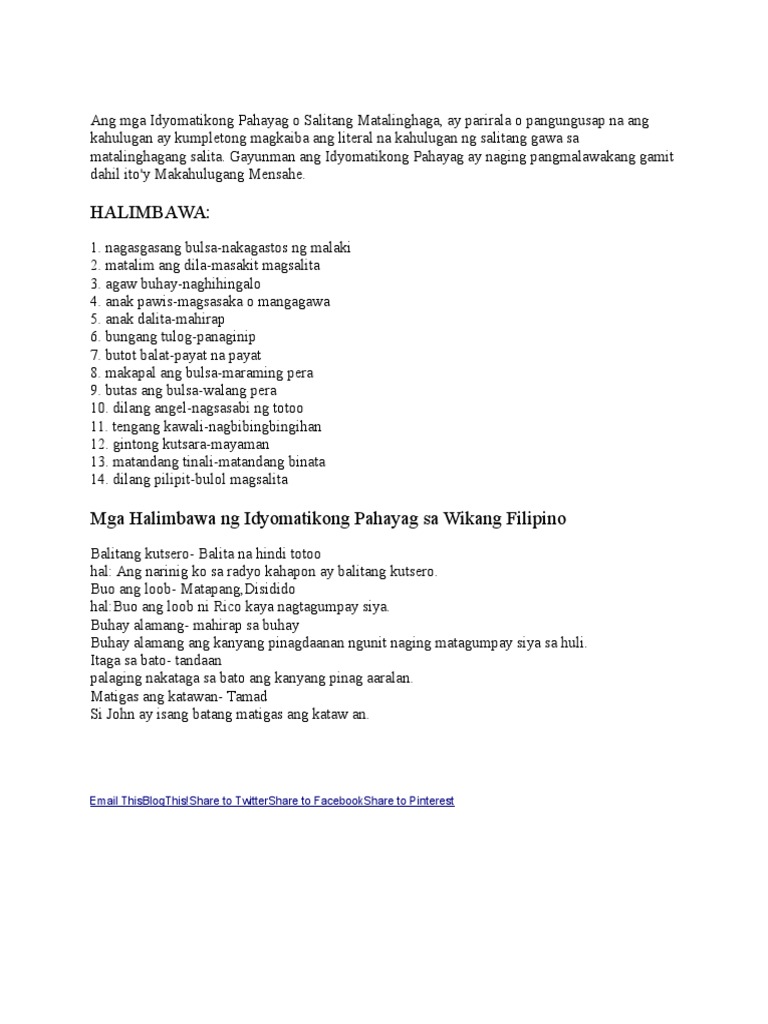 Ang Mga Idyomatikong Pahayag O Salitang Matalinghaga Pdf