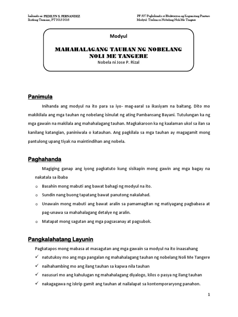 Modyul Tauhan Ng Noli Me Tangere Pdf