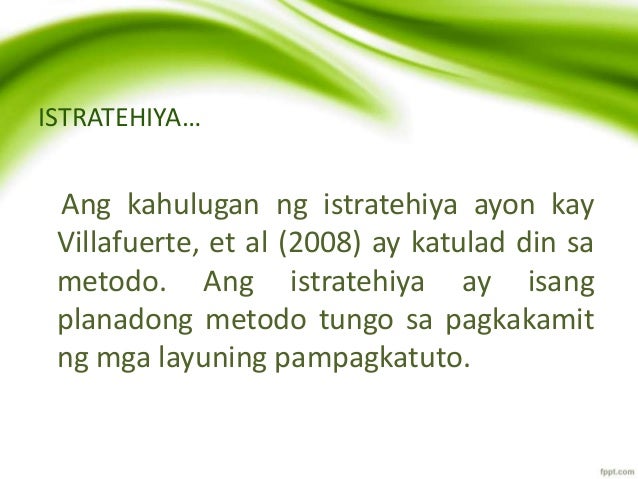Ano ang kahulugan ng estratehiya sa pagtuturo para. Ang Pagkakaunlad ng Panitikang Filipino Ikalawang Linggo. Mga Sanggunian Mga Aklat.
