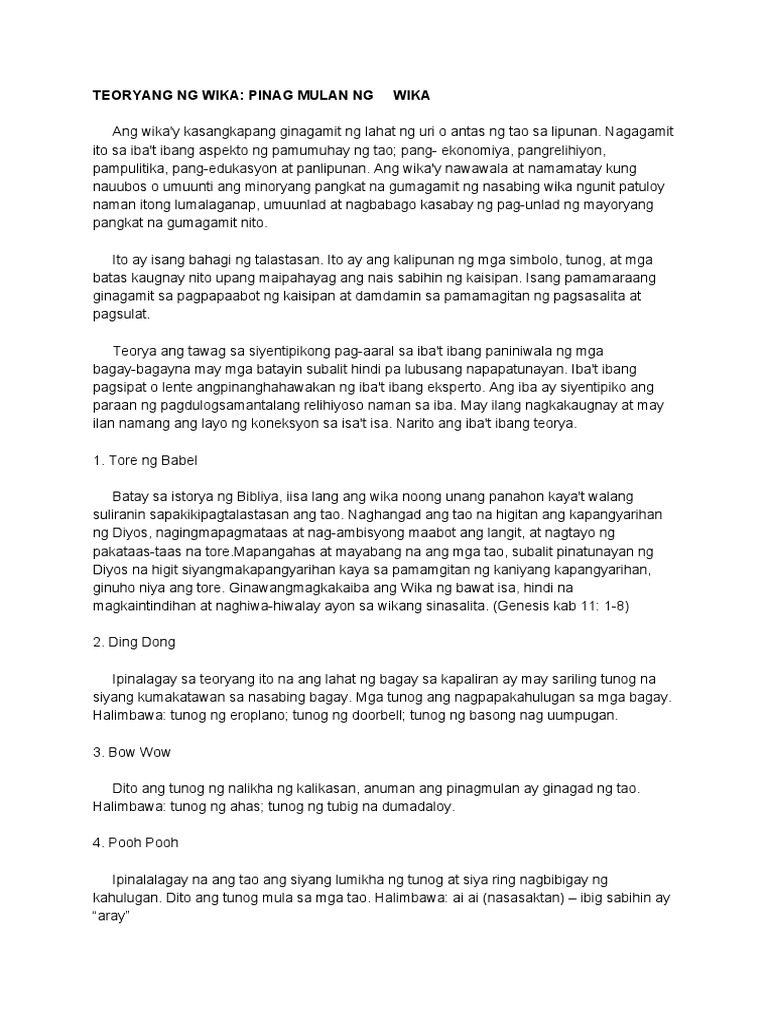 Mga Teorya Ng Pinagmulan Ng Wika Docx Mga Teorya Ng Pinagmulan Ng Wika Theories On The Origin Of Language Mga Teorya Ng Pinagmulan Ng Wika Maraming Course Hero