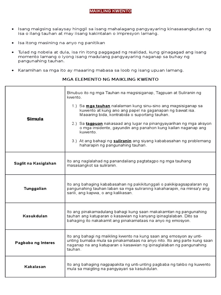 Kahulugan Ng Maikling Kwento Pdf