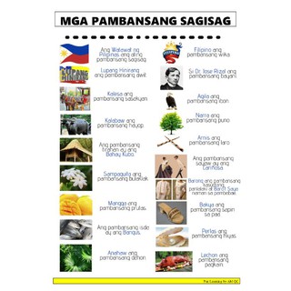 Alamin natin ang mga Pambansang Sagisag ng Pilipinas at ang mga kahulugan nito kung paano naging simbolo para sa mga Pilipino. Ang mga simbolo sa kabilang banda ay madaling makilala at ginagamit upang gabayan at ayusin i-record at makipag-usap. Maaawit mo ang pambansang awit ng Pilipinas.