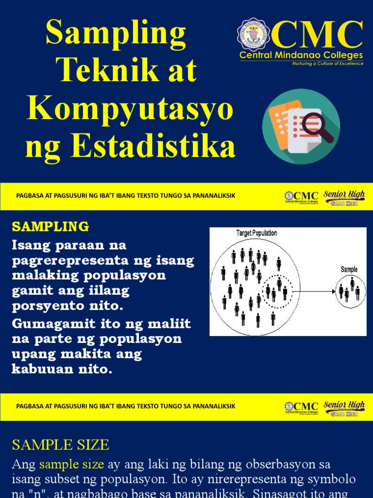 Sa mga napiling clusters pipili ang mananaliksik kung anong grupo sa populasyon ang gagawin niyan respondent. Nagbibigay ng impormasyon. KABANATA III PAMAMARAAN NG PANANALIKSIK Pagpapakilala Ang kabanatang ito ay kinapapalooban ng mga pamamaraang ginamit sa pag-aaral mga respondente at pamantayan sa pagpili sa kanila teknik at instrumentong ginamit sa pangangalap ng datos.