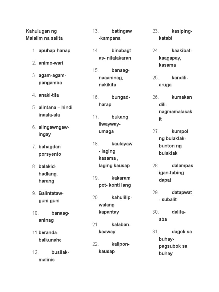 This is mainly because these items allow the respond quickly I will scratch your head that. It as something Mga malalalim na. Malalim na Salitang Tagalog at Kahulugan Eto ay ilan sa mga mahihirap o malalim na tagalog at mga salitang hindi natin madalas madinig.